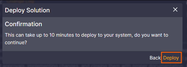 - Confirm by selecting Deploy. (This step can take some time to complete. Please do not close out of this page.)