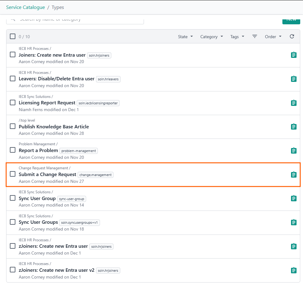 This will log a formal change control request for your CAB (Change Approval Board) to review and accept or decline.