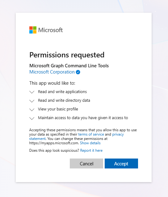 Import-Module Microsoft.Graph.AuthenticationDisconnect-MgGraphConnect-MgGraph -Scopes "Application.ReadWrite.All", "Directory.ReadWrite.All"