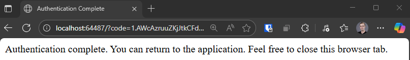 Authentication complete. You can return to the application. Feel free to close this browser tab.